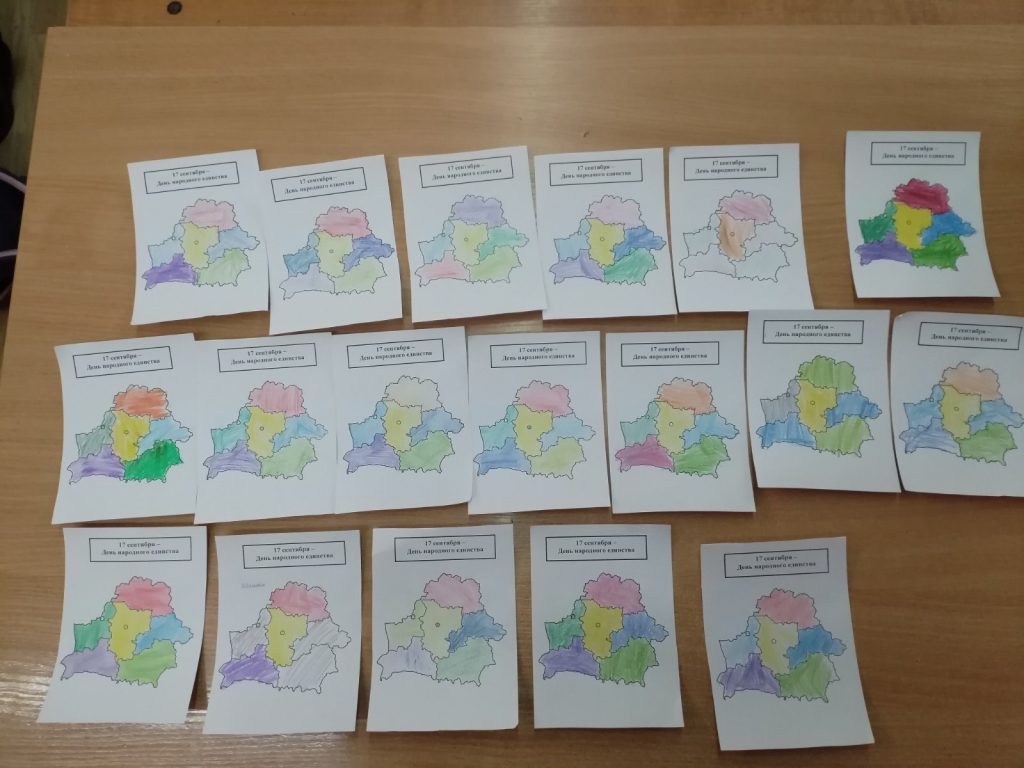 Сотрудники филиала «Лидская городская детская библиотека» подготовили интерактивно-патриотическую игру «Мы едины – мы непобедимы!». Ученики 3-го класса ГУО «СШ №6 г.Лиды им. Н.Б.Куконенко» приняли участие в ней. С ребятами поговорили о значение слов «единый, единство», о важности единства народа в построении крепкого государства, рассказали о государственных символах, которые объединяют страну в единое целое. Ученики отгадывали загадки про Беларусь и символы нашей страны, отвечали на познавательные вопросы и разрисовали карту Беларуси. Ребятам напомнили о героизме людей во время войны и познакомили с книга про нашу страну.