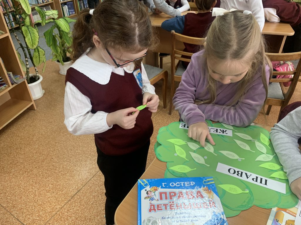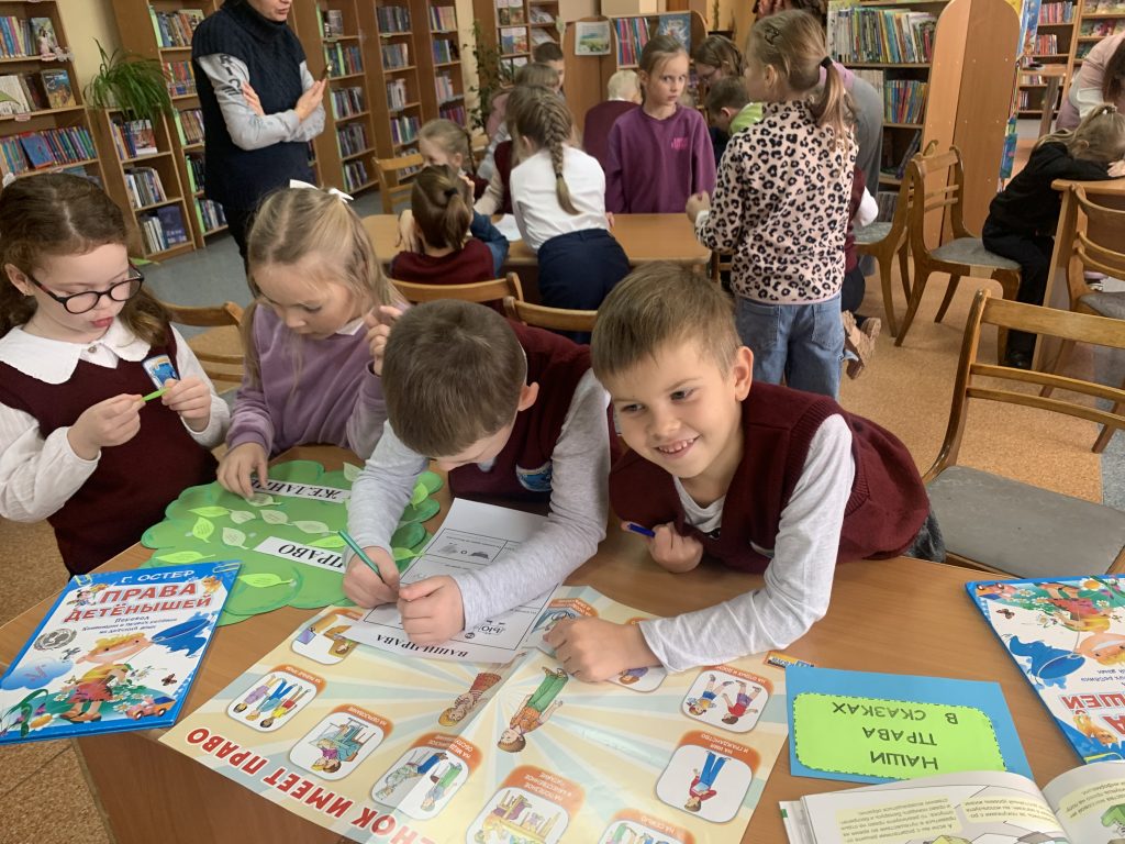 В филиале «Лидская городская детская библиотека» для учеников 1-го «В» класса ГУО «СШ №1 г.Лиды» прошёл правовой лекторий «Есть права и есть обязанности». Что такое право? Какие права есть у детей? Какие обязанности дети должны выполнять? На эти вопросы получили ребята ответы, а также закрепили полученные знания, решая ребус «Я имею право…», в игре «Разрешено-запрещено» и викторине «Сказка и право».