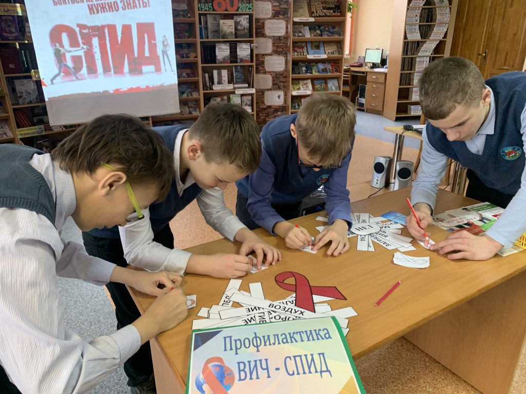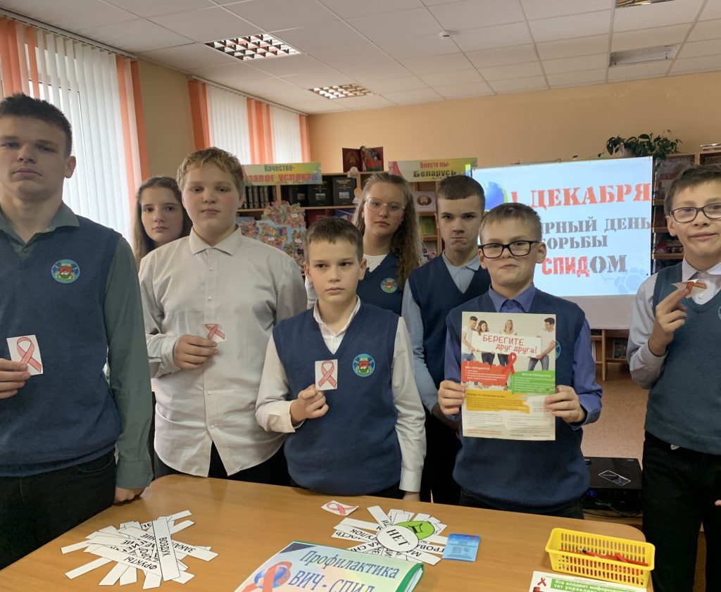 В филиале «Лидская городская детская библиотека» к Всемирному дню борьбы со СПИДом прошёл тематический разговор «Береги свою жизнь» для учеников 7-го класса ГУО «СШ №4 г.Лиды». С ребятами говорили о здоровье и о важности знания правил сохранения его. Ребята поучаствовали в игре слов «Да – ЗОЖ» и викторине «Здоровье». Ученикам рассказали о том, как возникает ВИЧ, что такое СПИД. Ребята написали свои чувства, которые возникают, когда они слышат слово СПИД, посмотрели информационный ролик про ВИЧ и узнали о красной ленточке – символе борьбы со СПИДом.