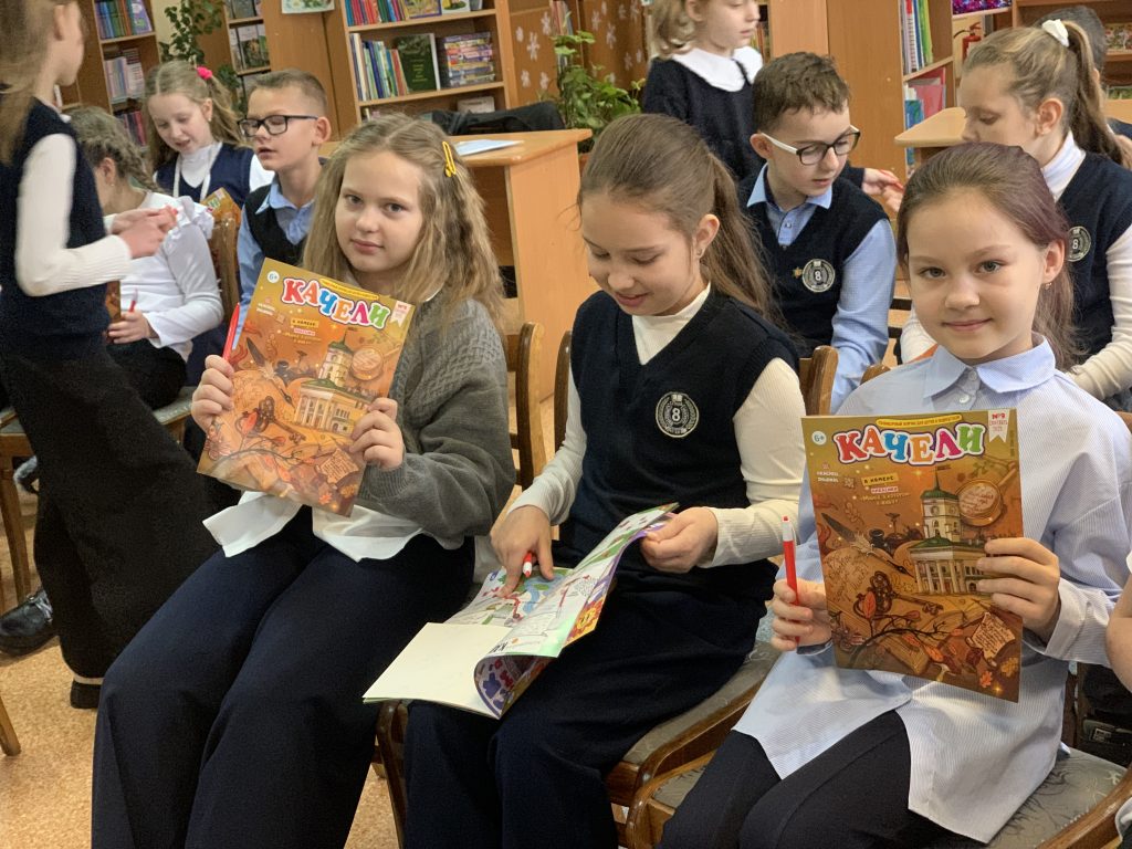 Что такое качели, знает каждый… А вот держали ли Вы «Качели» в своих руках…? Интересное и увлекательно знакомство с журналом «Качели» и лично с его главным редактором Татьяной Гуляевой прошло в филиале «Лидская городская детская библиотека» для ребят 3-го «В» класса ГУО «СШ №8 г.Лиды имени В.Ф.Казакова». Ребята изучали карту нашей страны, отгадывали названия белорусских городов, называли города, в которых они побывали и планируют съездить классом. Дети получили в подарок журналы, которые приятно читать, в них много ярких и красочных картинок, наклеек, ребусов, викторин, с которыми изучать нашу страну станет вдвое интересней. От редакции журнала «Качели» библиотека в дар получила специальные выпуски журнала.