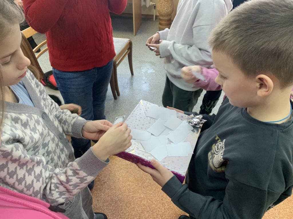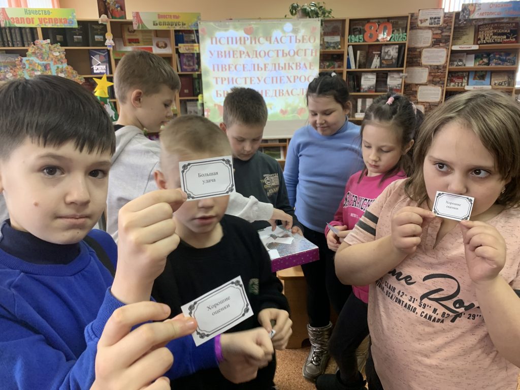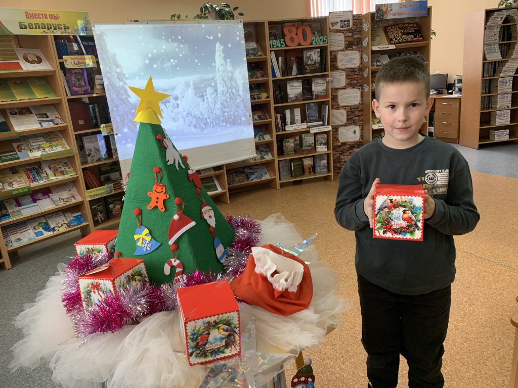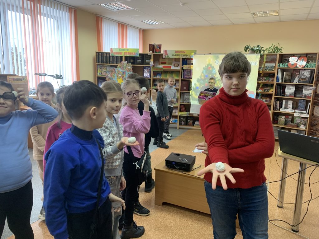 К новогодним праздникам в филиале «Лидская городская детская библиотека» прошёл интересный праздничный квест «Праздничный мешок Нового года». Воспитанники пришкольного лагеря ГУО «СШ №4 г.Лиды» приняли участие в нём. Ребятам нужно было собрать новогодний мешок с подарками, в каждом подарке было задание. Дети отгадывали «Снежные загадки», участвовали в новогодних викторинах по сказкам, отвечали на «Праздничные вопросы», играли в снежки, послушали поздравление от Деда Мороза и получили волшебные предсказания.